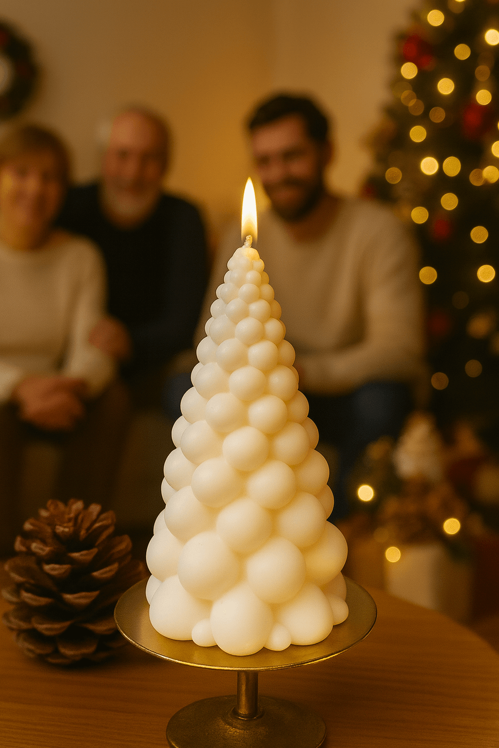 Nuestra vela árbol de burbujas, elaborada a mano con cera de soja 100 % natural, es el detalle perfecto para regalar en Navidad, cumpleaños o cualquier ocasión especial.