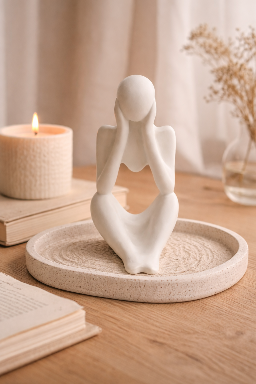 Esta figura decorativa es perfecta para crear un pequeño rincón de bienestar en casa: un espacio para respirar, reflexionar o simplemente disfrutar de la tranquilidad.