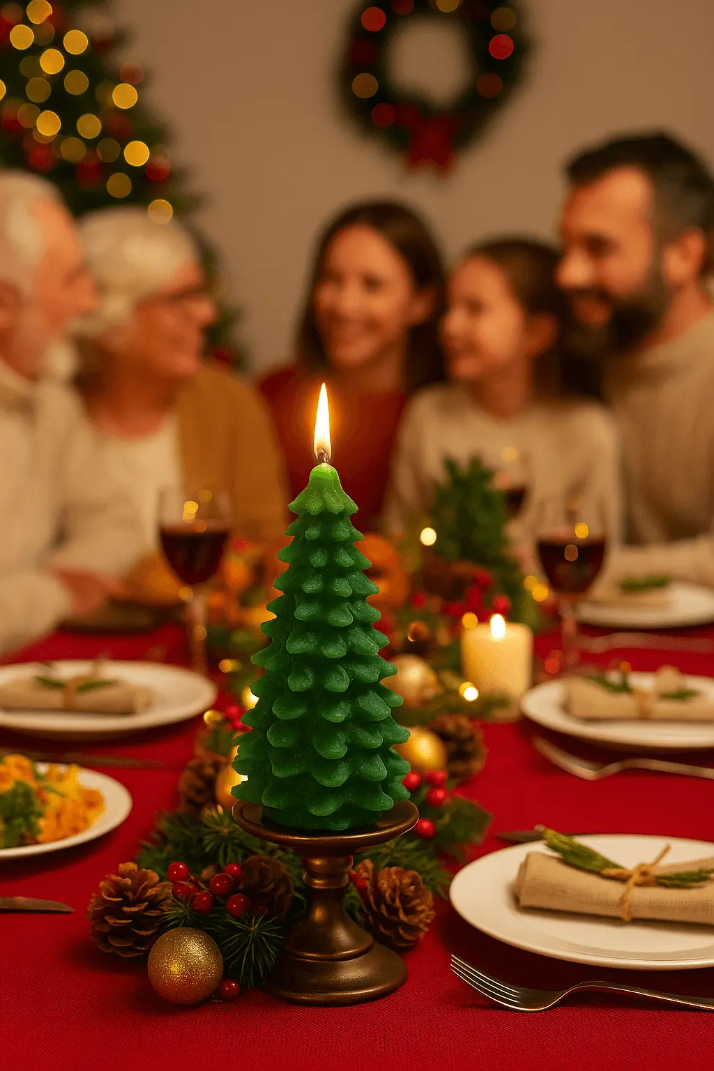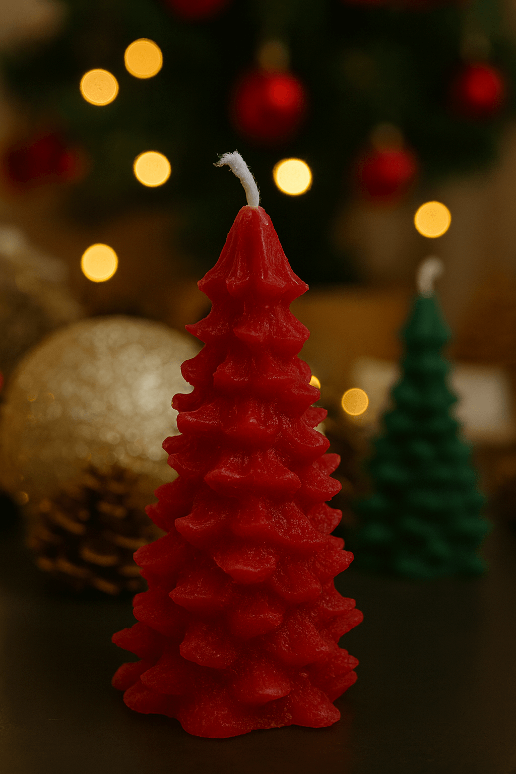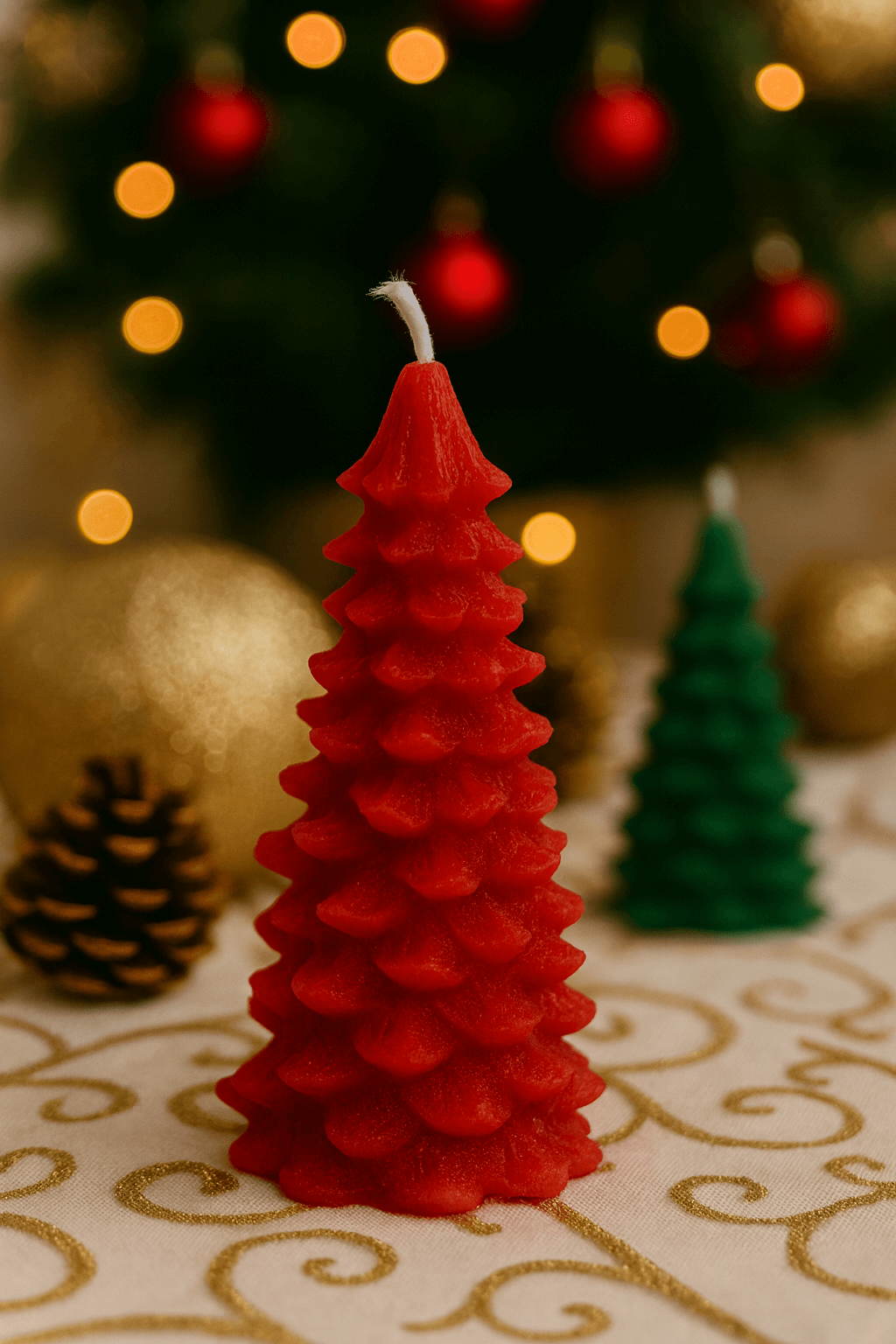Decora tu hogar con un toque cálido y elegante esta Navidad con nuestra vela artesanal en forma de pino, elaborada con cera de abeja pura y respetuosa con el medio ambiente.